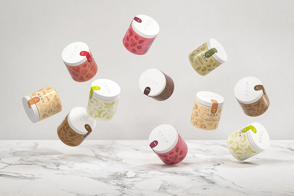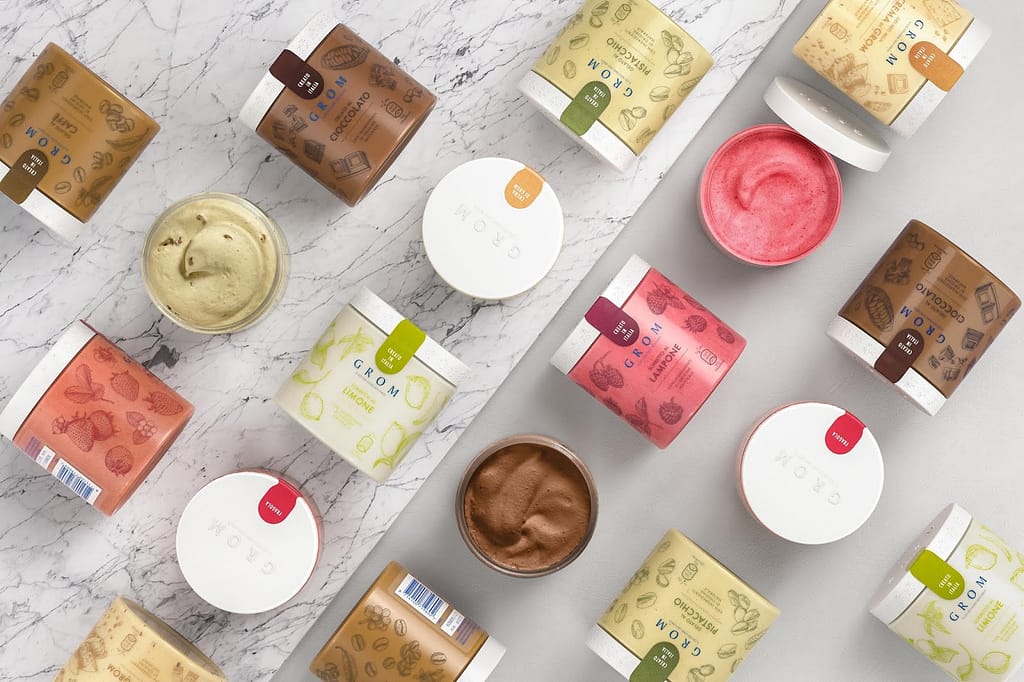 Čeští zákazníci si kromě gelata v kornoutu mohou tuto lahůdku vychutnat i doma nebo jí potěšit své blízké. Gelato Grom se totiž prodává také v podobě 460ml pint, jejichž obsah má díky speciální technologii balení naprosto stejnou kvalitu a chuť, jakou má gelato koupené do kornoutu, a to bez jakýchkoli přidaných konzervantů. Pinty jsou k dostání v gelaterii a také v online i offline maloobchodní síti. Aktuálně